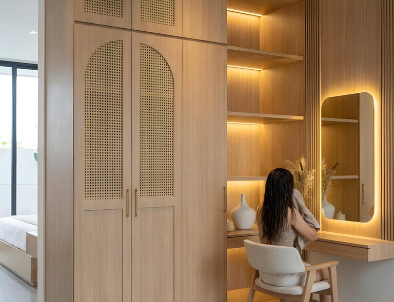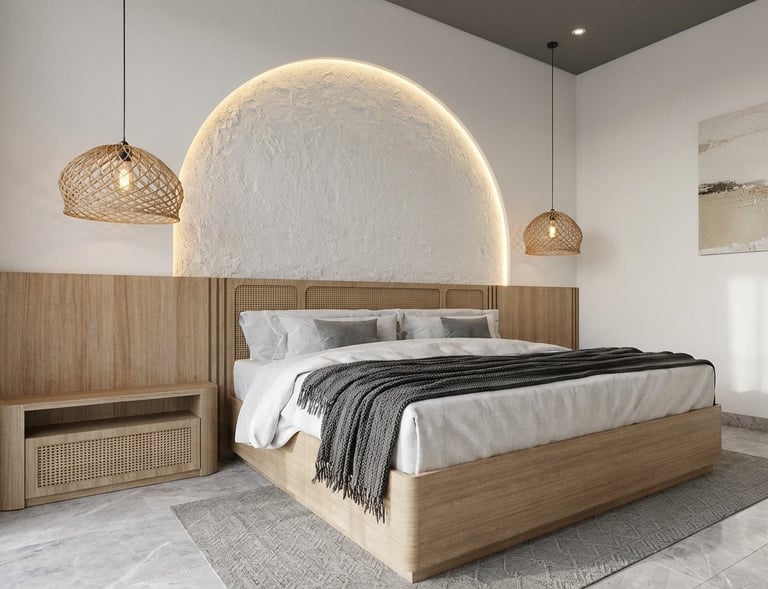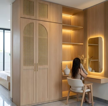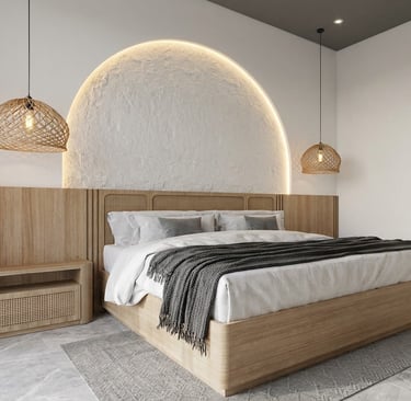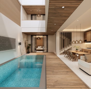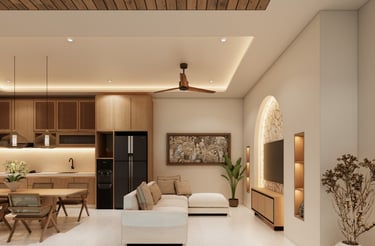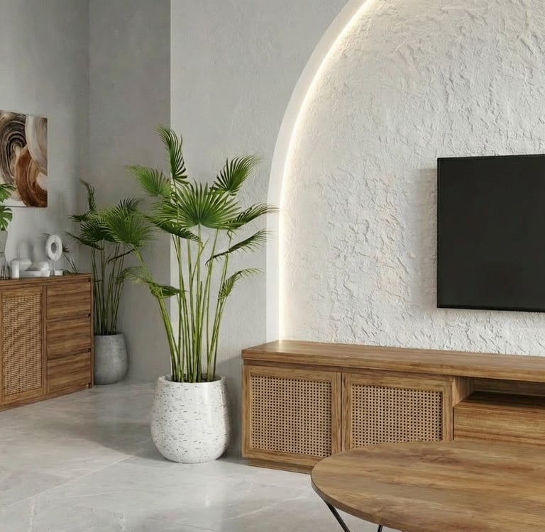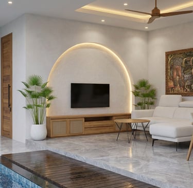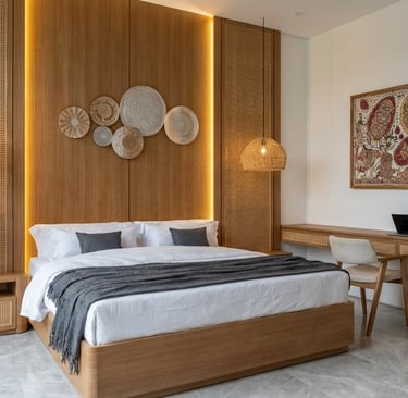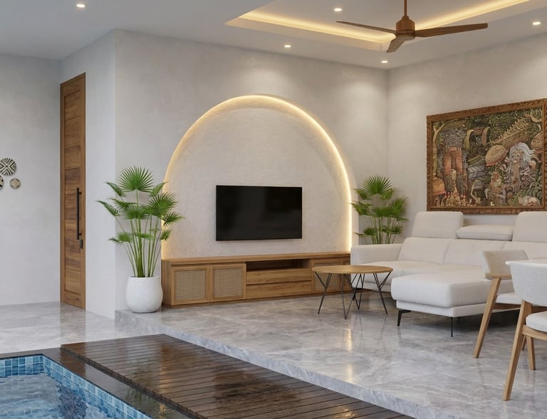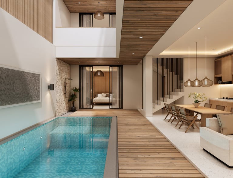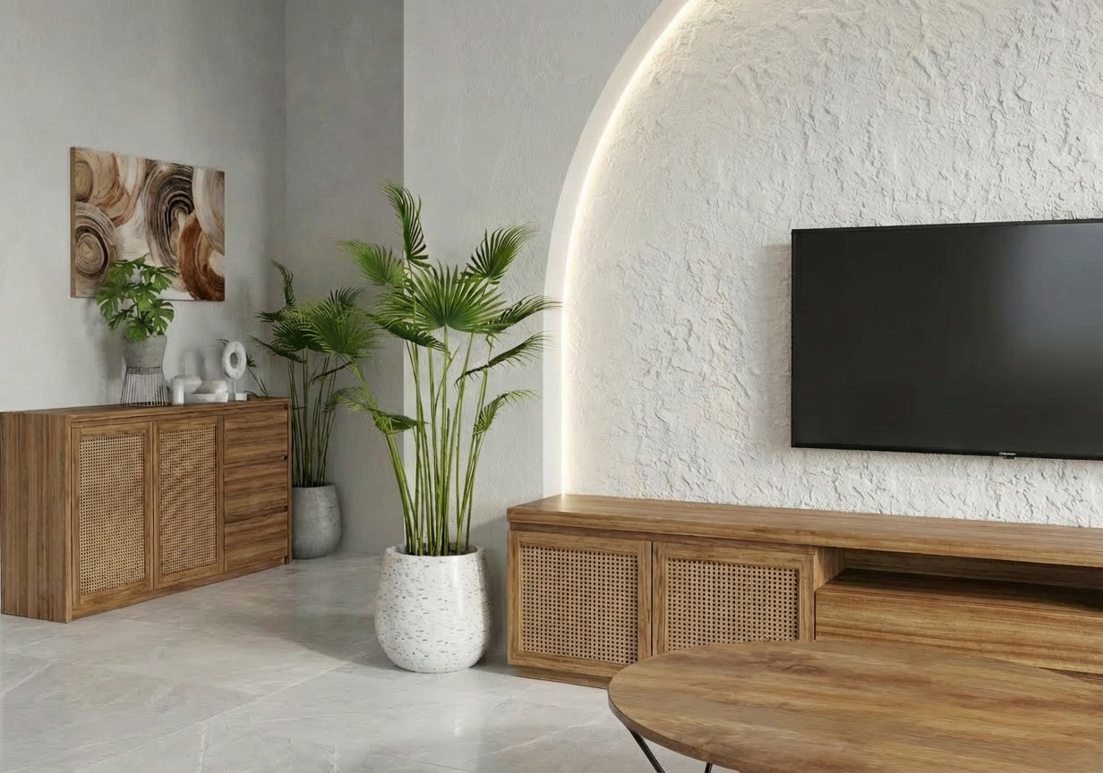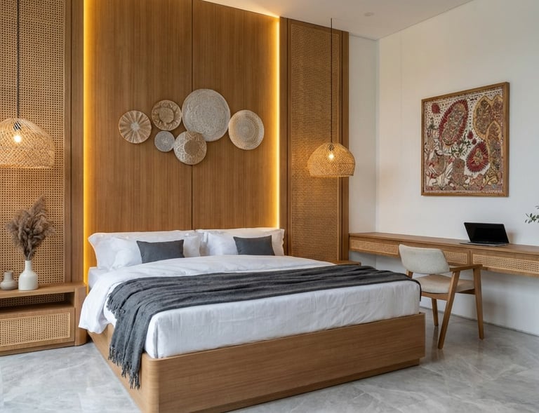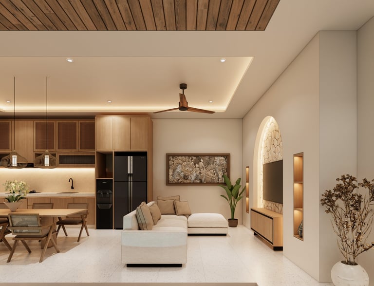 Interior minimalis dengan sentuhan tropis.